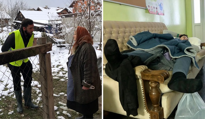 Volonteri znaju komande napamet. Semir ne stigne izgovoriti zapovijed, ekipa već trči s kolicima i tačkama. Trpaju hranu, higijenu, grijalice i izbacuju ih dalje. Red se pomiče, Semir viče, dobrovoljci ne staju. Dodijelili su mi tačke. U roku pet minuta u jakni mi je bilo prevruće. Kapu sam odavno odbacio. Slušam komentare. Žale se da im nedostaje stvari. Nema konzervi, nema sapuna, nema kruha. Gdje su? Sliježu ramenima. Spominju Crveni križ. Gluhi telefon je između njih, kažu. Napeto je posljednjih dana. Pred ljudima su nasmijani i poletni. Iza zastora je druga priča. Prorjeđuju se dobrovoljni kuhari, država nastupa, a nekadašnja skladna ekipa polako se rasipa. Jezgra smještena u osnovnoj školi ispod glasa vijeća kako dalje. Žele pomoći, a imaju osjećaj da im se podmeću klipovi. Uniforme im zadaju nove upute, miješaju im se u dobro uigran posao. Nervozni su.