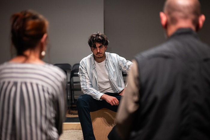 Scenografiju čini pješčanik za djecu (Matija je za roditelje i dalje dijete) s tri drvena kubusa na kojima sjede glumci a kada napuste taj prostora, moraju zakoračiti među gledatelje pa se svatko iz publike može poistovjetiti s njima (kostimografija Zdravka Ivandija Kirigin).